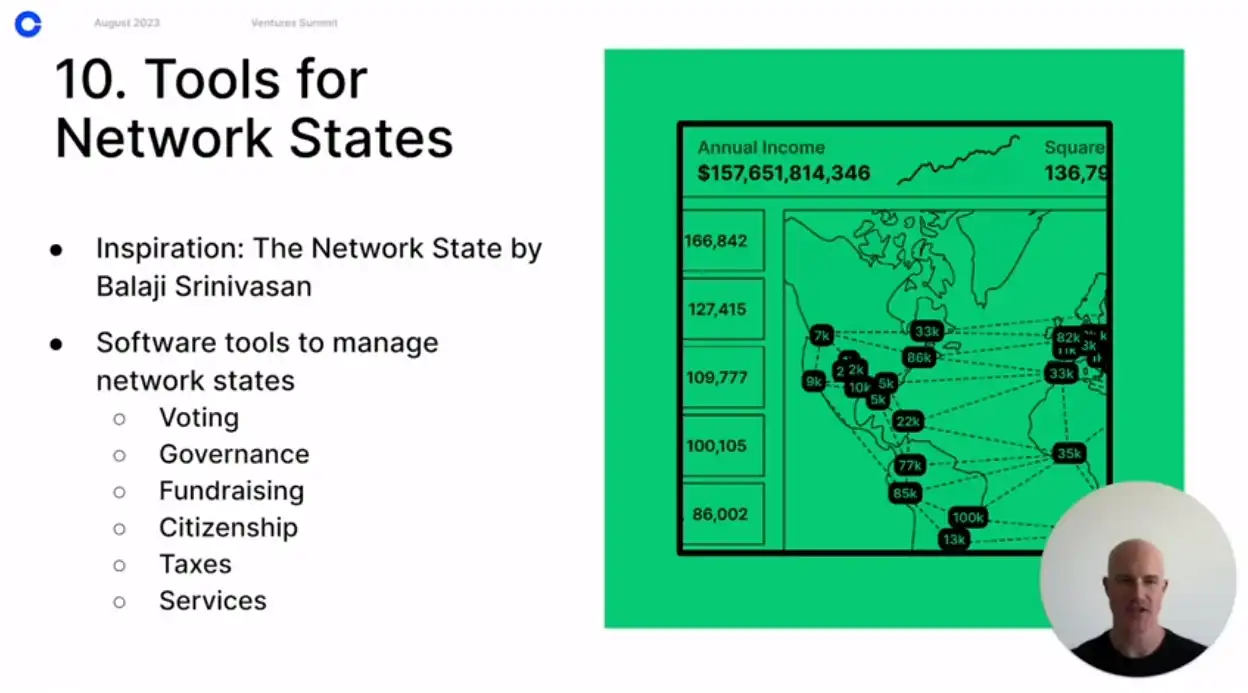 "网络状态"这一概念由 Balaji Srinivasan 提出,加速了向初创城市和网络状态的发展。未来将会启动更多的网络状态,它们需要工具来管理投票、治理、筹款、公民身份、税收征收、提供服务等。回想一下,这种软件对许多不同类型的初创城市和社区也会有用。