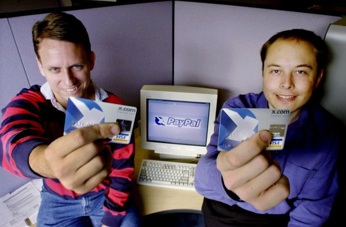 埃隆·马斯克(右)和彼得·泰尔的公司于 2000 年 10 月合并成立了 PayPal。照片来源: PAUL SAKUMA/美联社