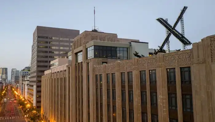 2023 年 7 月 29 日,旧金山 Twitter 总部屋顶上新建的 X 标志。照片来源: JOSH EDELSON/AFP/GETTY IMAGES