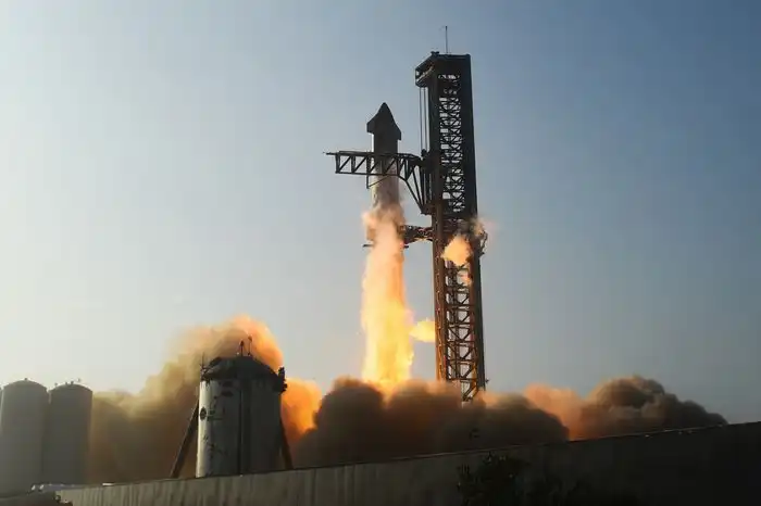 2023 年 4 月,SpaceX 星舰火箭在德克萨斯州博卡奇卡升空进行测试。照片来源: PATRICK T. FALLON/AFP/GETTY IMAGES