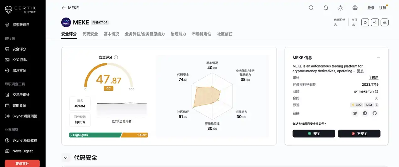 其次,作为去中心化交易平台,MEKE 相对于传统的中心化交易平台拥有更强的安全性。MEKE 保证每一笔交易都会在区块链上记录,而且依靠智能合约完成所有的交易操作,让所有的行为可看可查、减少人为干预。MEKE 积极响应行业中呼吁,第一时间将代码交由安全机构 Certik 审查,且成功通过。