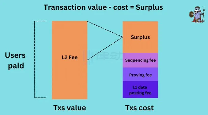 交易费用:每当用户在 Rollup 上进行交易时,都会从该交易中收取一定的费用。此外,Rollup 还可以通过拥堵费(在序列器中)以及从交易中提取的 MEV(矿工最大可提取价值)来产生收入。