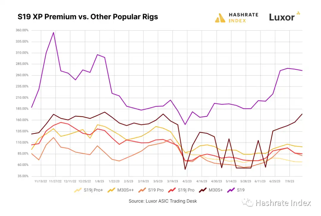 图十三:S19XP 与其他机型溢价对比