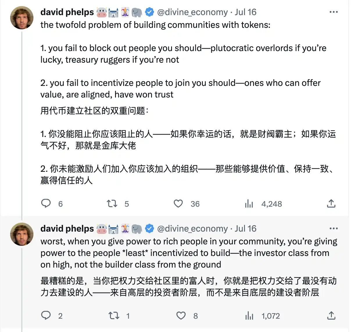 但正如 Jokerace 创始人 David Phelps 所信奉的——「代币在其他方面如激励机制等仍有重要作用,但不应该主导社区治理,我们需要思考后代币时代的新可能性」。