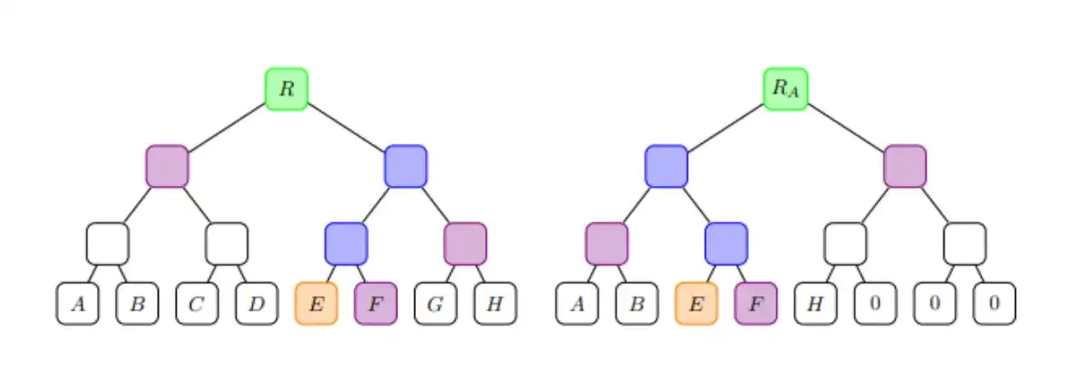 ● 进入提供的关联集合根 RA 的 Merkle 分支