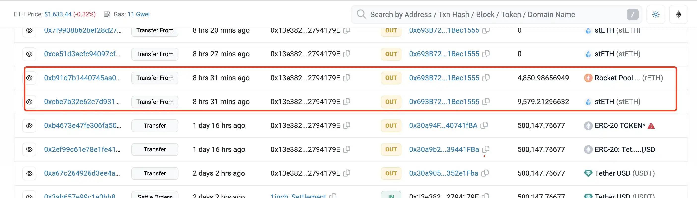 据 Scam Sniffer 数据显示,大约 8 小时前,0x13e 开头巨鲸地址因遭遇钓鱼攻击损失 4850 枚 rETH 以及 9579 枚 sETH,价值约 2423 万美元。