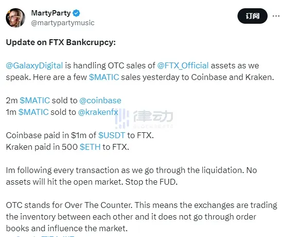 加密 KOL:Galaxy Digital 正处理 FTX 资产的 OTC 销售,或不会影响市场