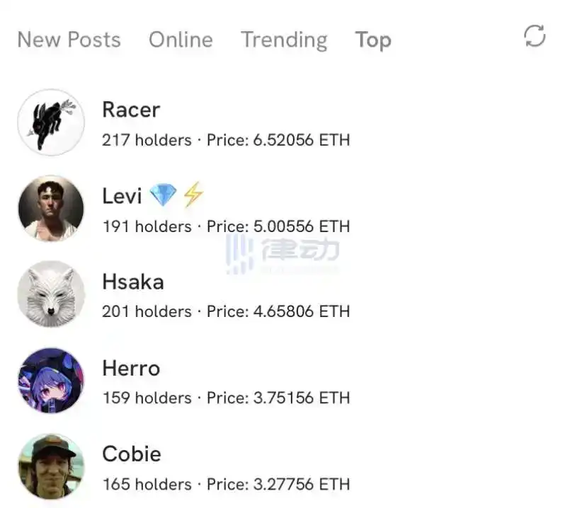 friend.tech「Keys」价格排行榜:创始人 Racer Key 以 6.52056ETH 暂列第一