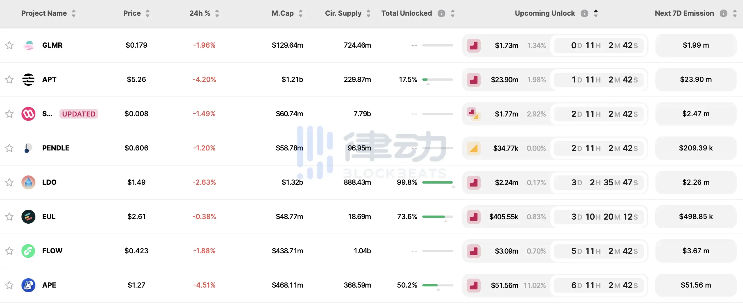 下周解锁数据一览:价值 5160 万美元的 APE 以及 2385 万美元的 APT 即将解锁