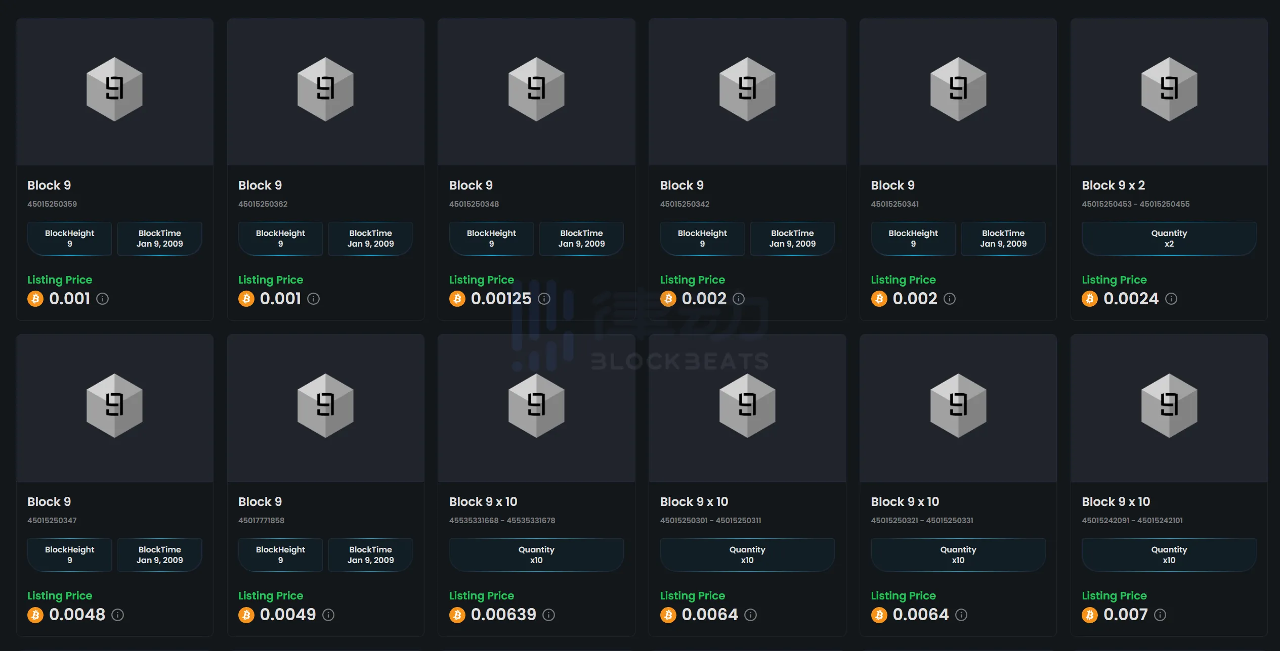 看看 Magicsat 上面现在「Block 9 第 9 区块」远古聪的挂单就知道到底有多贵了,更何况还有尾号这个限定条件...