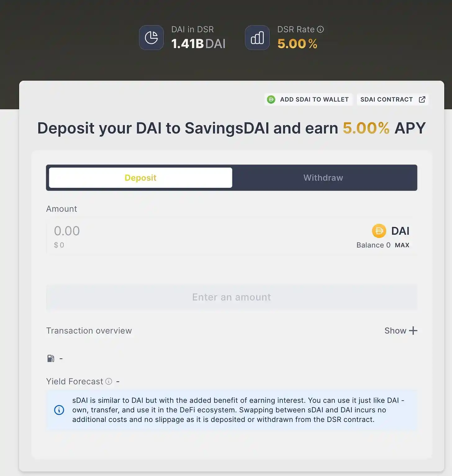 正如之前提到的,Maker 从支持 DAI 的抵押品中产生了大量收入。这些收入的一大部分被用于在 Spark Protocol 的 DSR 储蓄库中为单边$DAI 提供 5% 的固定收益。收益来自可持续的收入,并以$DAI 本身的形式分发。