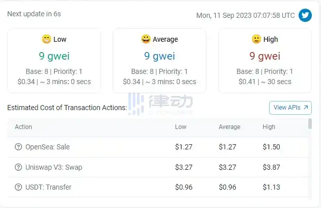 4. 以太坊网络 Gas 费跌至 9 gwei;