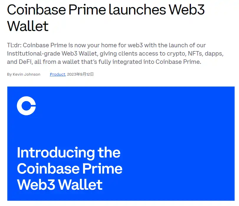 Coinbase Prime 推出面向机构和企业客户的 Web3 钱包