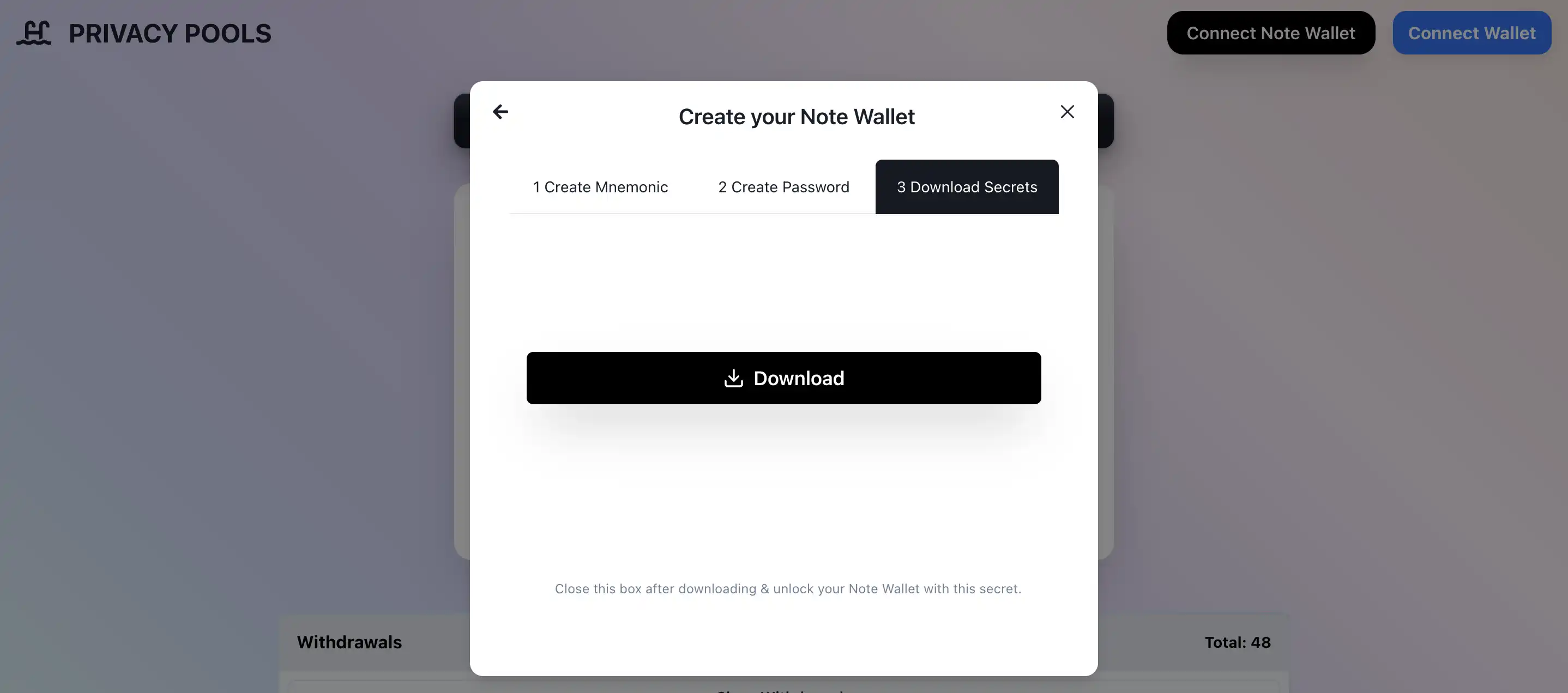 用户向 Privacy Pools 存款,每笔存款都会分配一个唯一的 secret/coin ID 对,在提款时,用户指定一个与其存款存在关联的关联集,通过提供一个 nullifier,证明确实有这笔存款,并且存款要位于用户选择的关联集中,如此就可以在不暴露具体是哪笔存款的情况下显示。特殊情况下用户也可以向交易对手方提供更直接的证明来说明具体的存款。