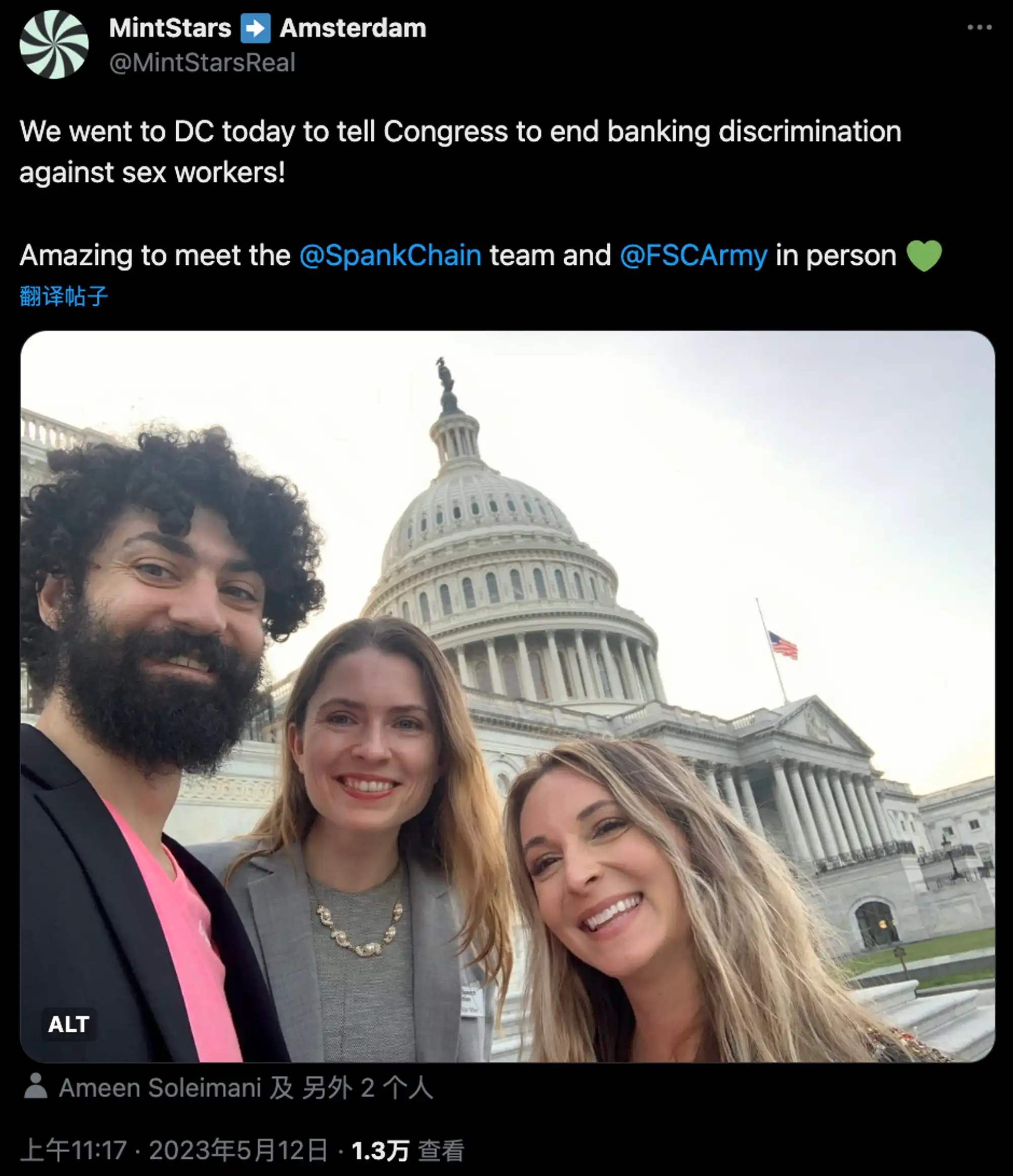 但如果只认为 Ameen 是个花花公子就大错特错了,Ameen 创建 SpankChain 的原因就是为了保护成人行业从业者的权益。他还曾前往华盛顿与华盛顿特区言论自由联盟的一组代表一起,与民主党和共和党议员会面,讨论成人行业面临的歧视问题。