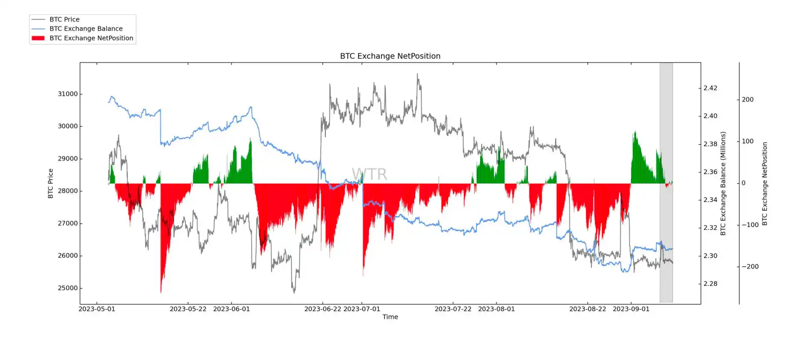 4. 交易所净头⼨整体呈现少量流⼊状态,抛压较低。