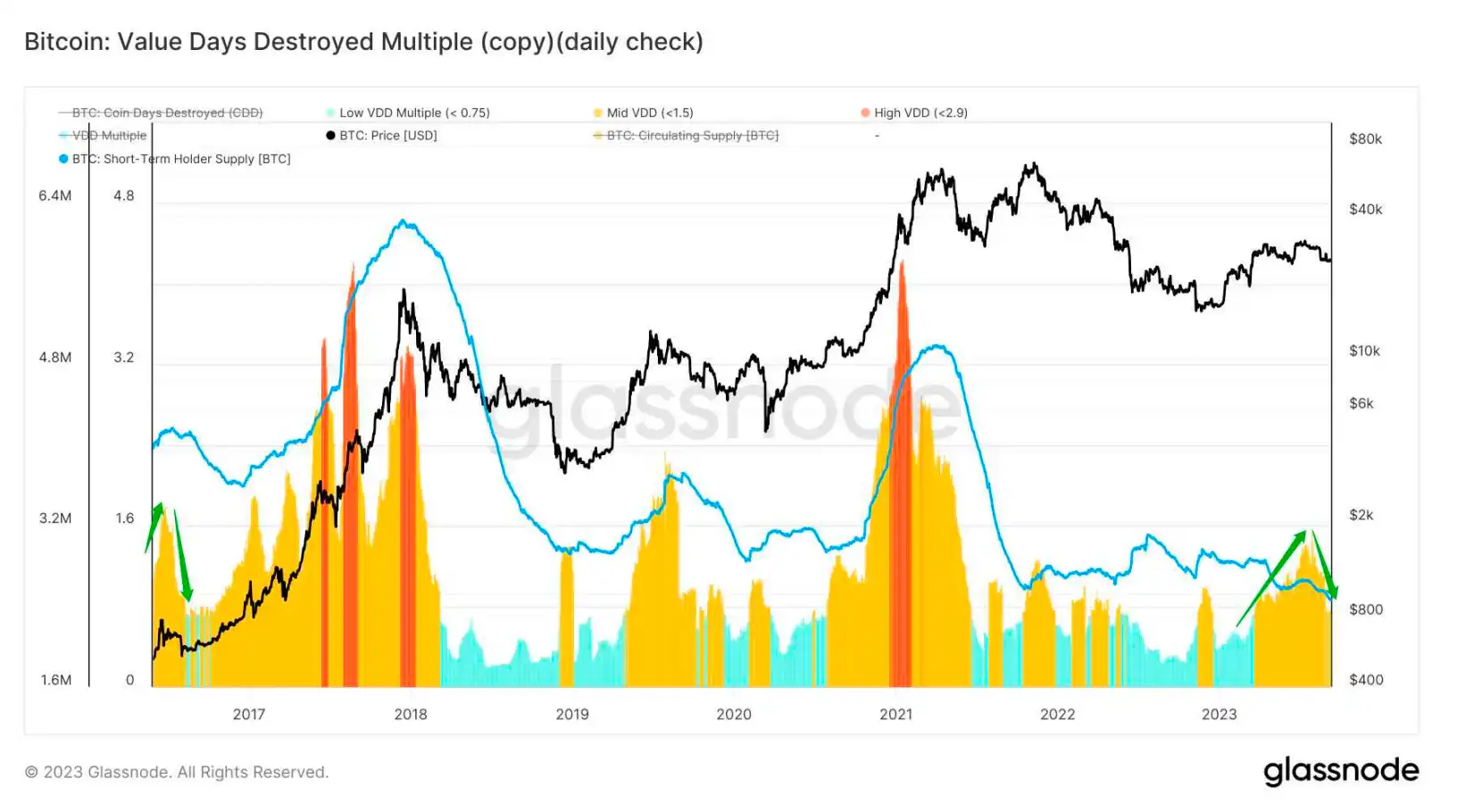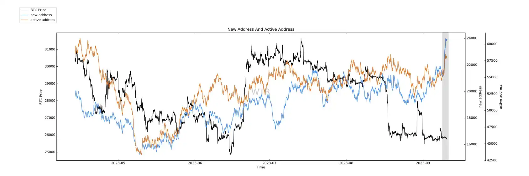 另外拉⻓时间线观测过往链上新增活跃地址突然⼤量增多,可能预⽰着⼀定量的波动即将到来。