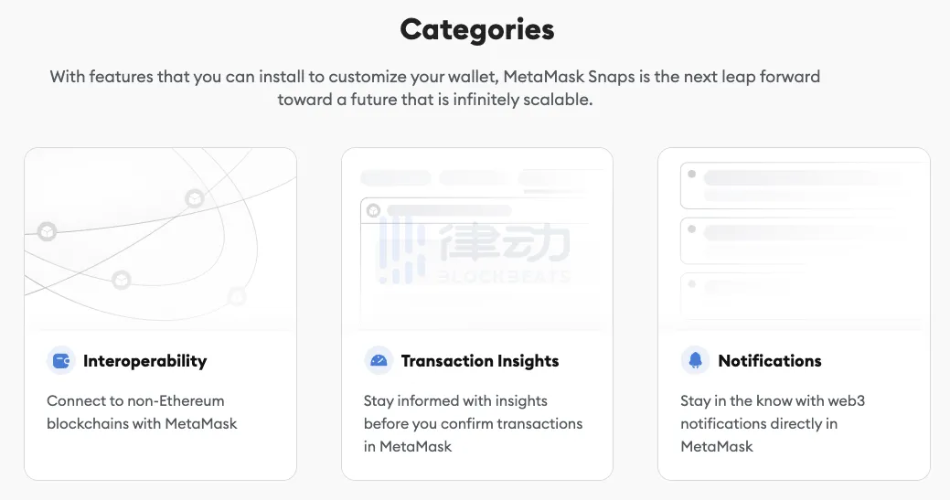 :MetaMask Snaps 目前主要的功能类别是什么?