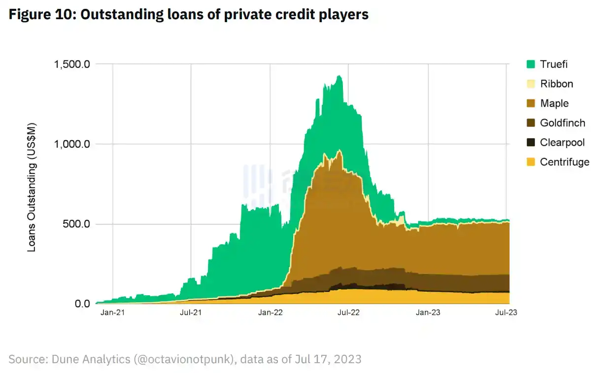 基于这样的创始团队背景,也不难理解,之前作为专注于无抵押加密货币贷款的私人信贷领域市场领导者之一的 Maple Finance,在近一年来 RWA 叙事火热后也已越来越多地涉足基于 RWA 的贷款。