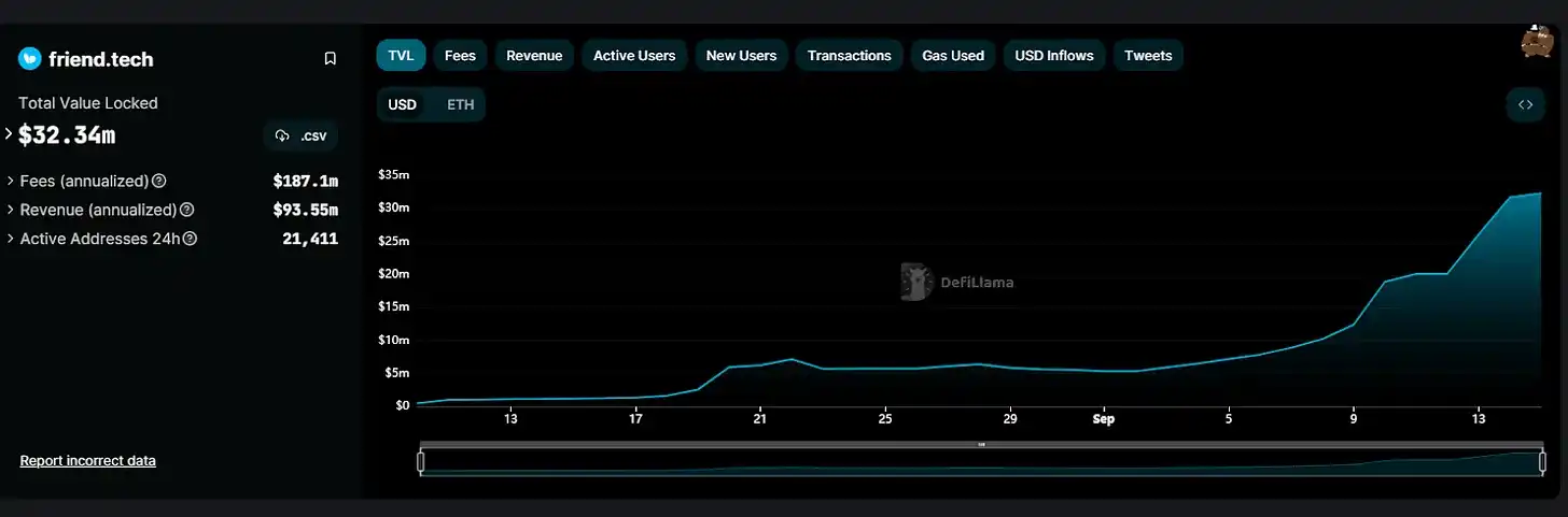 查看 Friend.Tech 的链上指标可以讲述一个看似非常积极的故事。