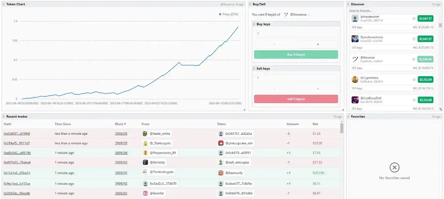 - 用户可以买卖和交易「Keys」,这些 Keys 与特定的 X(twitter)账号绑定,实质上是购买该平台用户的股份。
