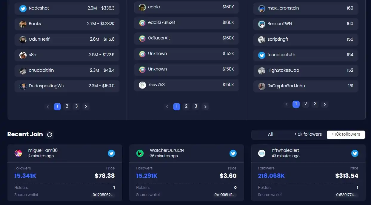 一个查看顶级账户的好地方。我最喜欢的功能是「最近加入」部分,你可以试图在人们爆发之前发现他们。
