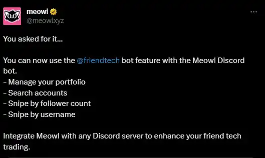 如果您不喜欢电报,那么 Meowl 最近在其 Discord 机器人中添加了 FT 选项。