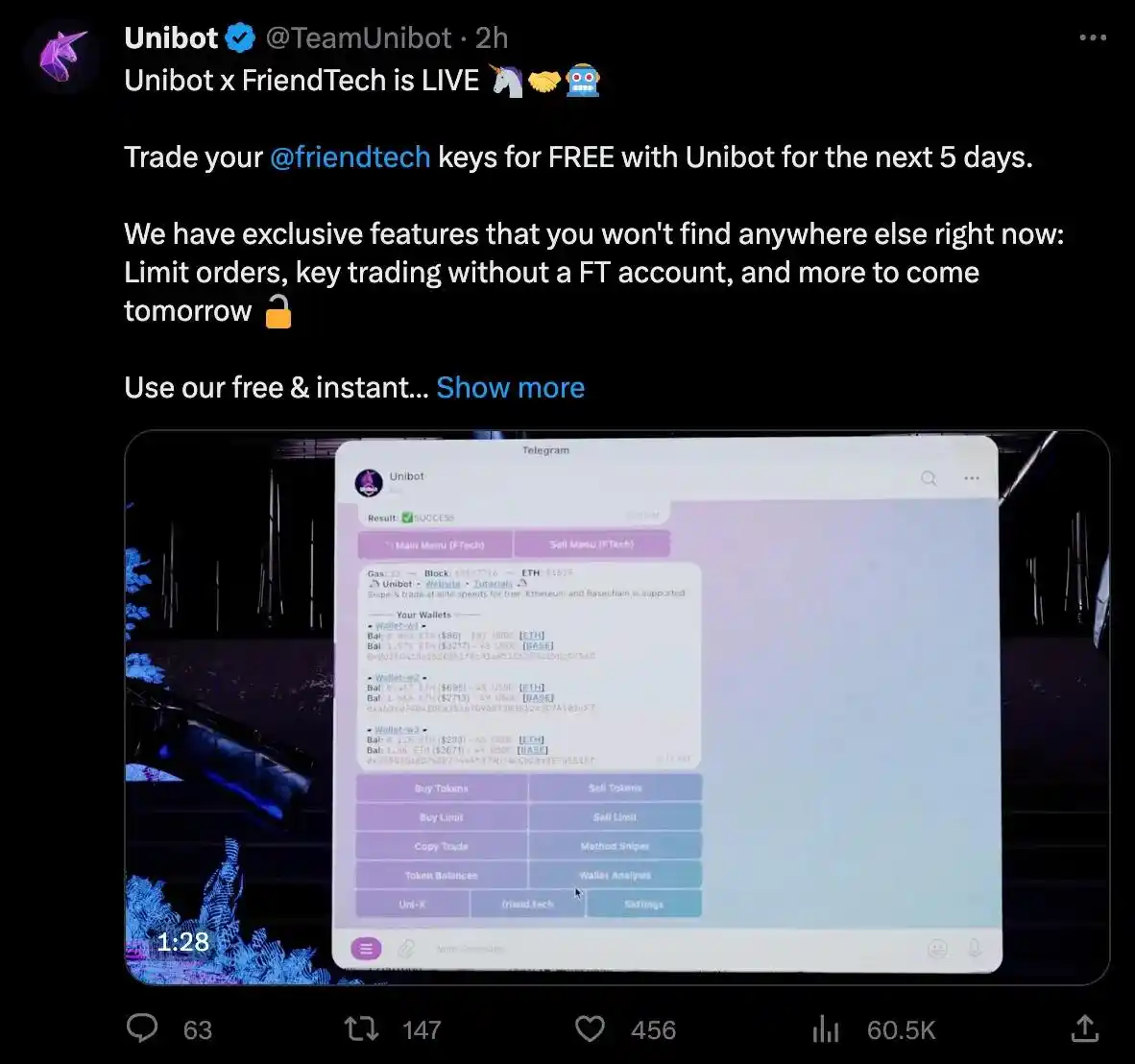 我理解目前对 Friend.Tech 的怀疑态度,但你只需要发挥想象力,想象它可以变成什么样子。这个领域的大多数应用都没有前景,FT 可能也不例外,但它极可能成为吸引不关心加密货币的用户的载体。