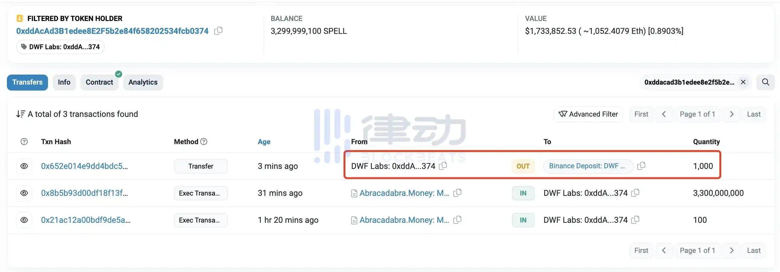 3. DWF Labs 将 20 亿枚 SPELL 存入 Binance;