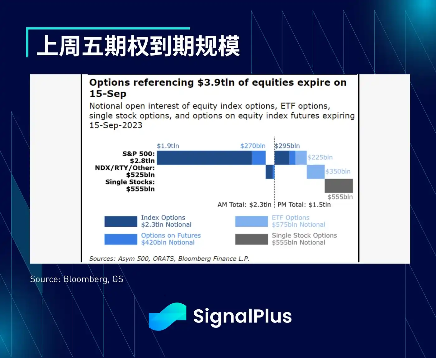 我们预计 9 月下半月会比上半月更加波动,除了 UAW 罢工的隐忧和股票季节性的负面影响外,上周五的期权到期日有约 4 万亿美元的期权到期,在过去几周里,由于市场 long gamma,SPX 基本上保持在一定范围内波动,在月底之前我们更倾向对风险敞口持消极的立场。