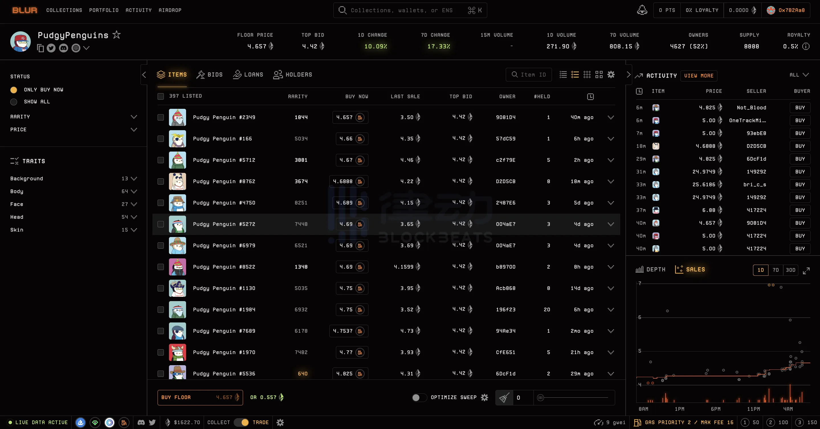 NFT 项目「胖企鹅」Pudgy Penguins 地板价升至 4.657 ETH,24 小时涨幅 10.9%