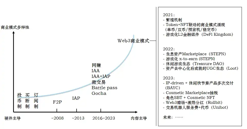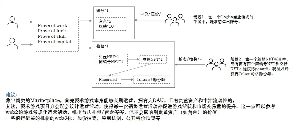 Gocha(氪金抽卡)的商业模式从日本引进中国,如今已经十载,但近半年尤其是国内版号放开之后发现玩家消费力疲软,用户付费规模总体下降。另外一边,《逆水寒》等游戏采取以轻度付费和大 DAU 也取得成功。建议:web3 商业化抓手较多,适合进行商业化创新,建议阅读我们的前面两篇研报,最大化 NFT+token+税收的利润空间。