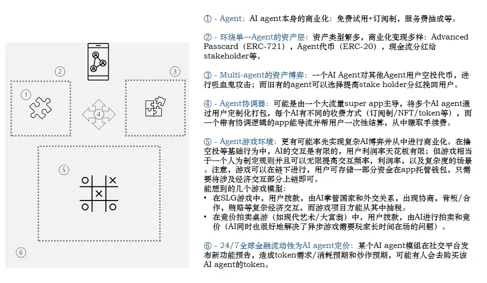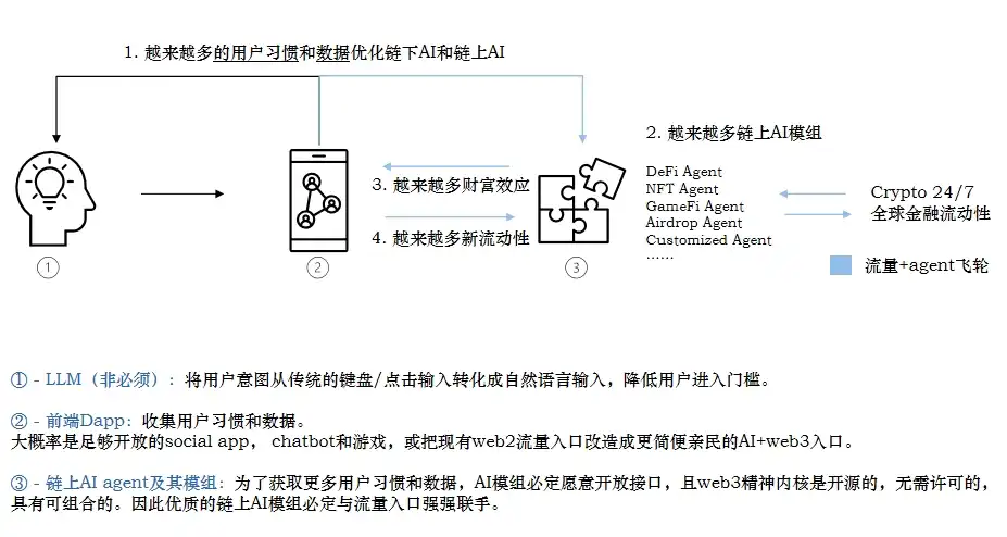6. AI agent 时代依然是流量为王。流量主导+crypto agent 更容易起量并找到良好的商业化途径,而后端 AI 可以持续优化+模组化并寻求与优质流量入口合作。