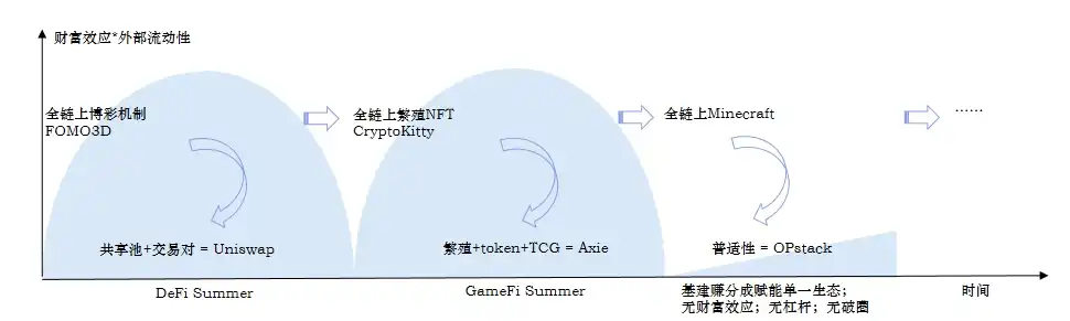 5. 全链上游戏:做优秀的开源赛马场,而不是重复造轮子,找到足够具备财富效应的创新机制并将其产品化+游戏化,最终破圈获取外部流动性。