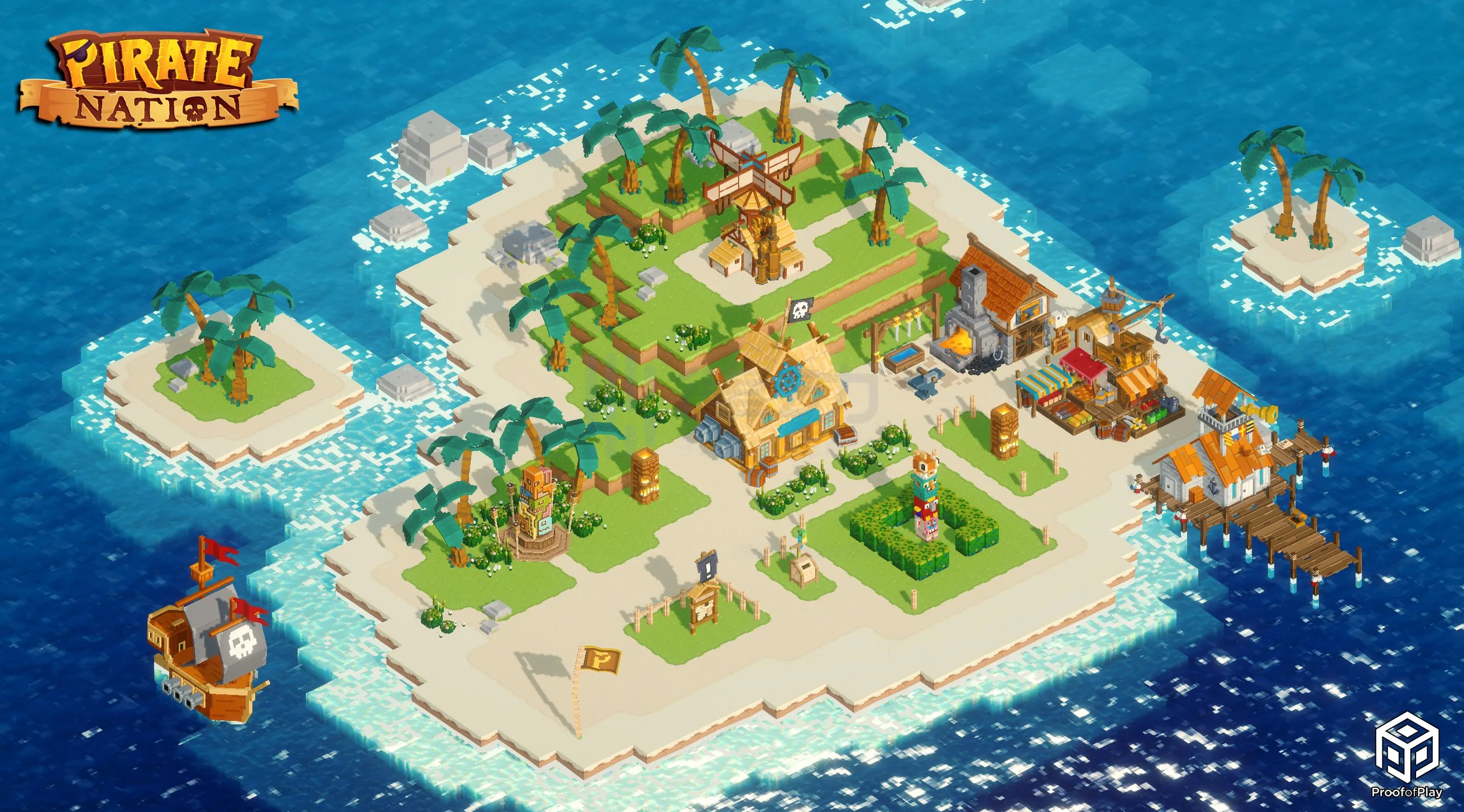 Pirate Nation 是 Proof of Play 推出的第一款游戏。这是一款完全链上的 RPG 游戏,主要的游戏内容是作为一个海盗拉起自己的海盗小队,探索岛屿周边的海域,完成各种任务来获取战利品,建设自己的岛屿。