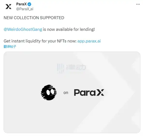 11 月 18 日,Web3 超级应用 ParaX 宣布已支持 NFT 项目 Weirdo Ghost Gang「小幽灵」进行借贷活动,为该系列 NFT 提供即时流动性。