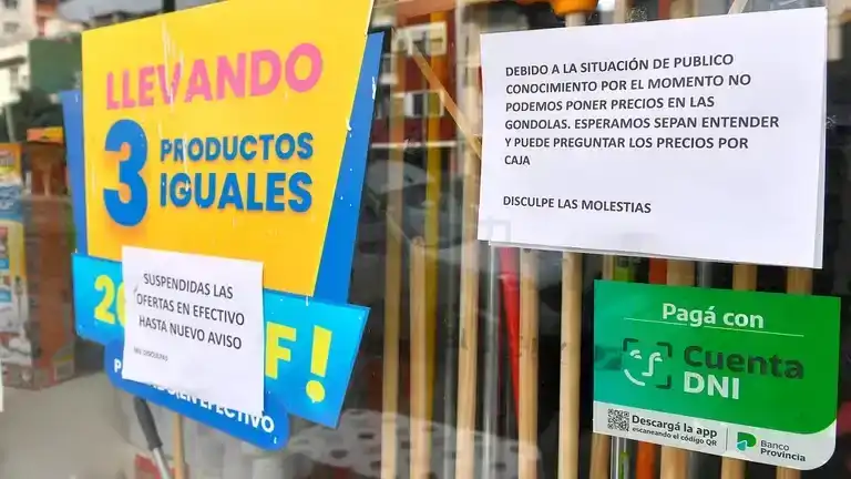 「由于目前的情况,我们暂时无法在货架上显示价格,请在收银台咨询价格。所有现金促销暂停,直至另行通知,感谢您的理解。」这是阿根廷的一个小型市场外张贴的告示,充分反映了近几年来阿根廷经济的混乱。