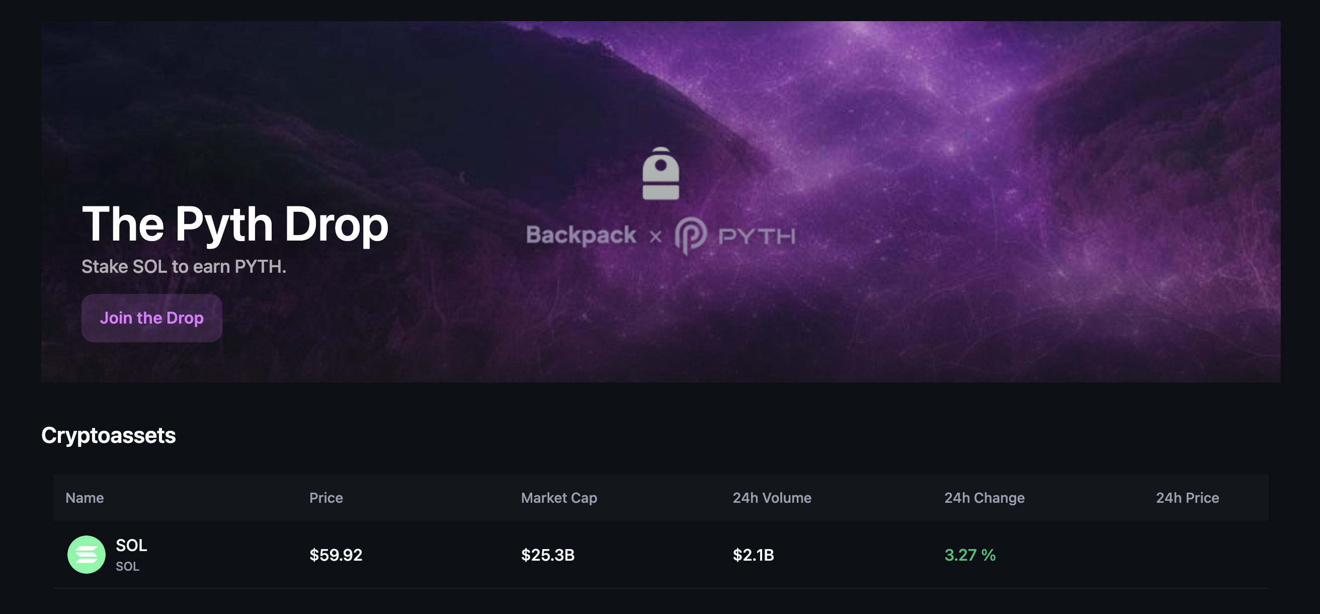加密交易平台 Backpack Exchange 宣布将上线 Pyth Network (PYTH) 同时还推出了 PYTH 的质押空投活动,通过在 Backpack Exchange 质押 5 枚 SOL 代币至少 24 小时后,持有 Mad Lad 的用户和在 Backpack Exchange 进行交易活动的用户,将根据其交易量获得 PYTH 代币,这让 Solana 生态的热度进一步高涨。