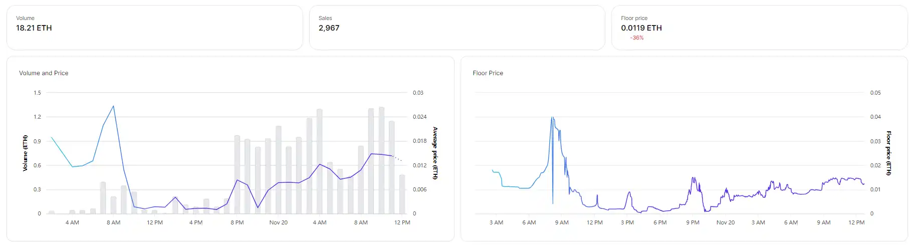 更让社区惊讶的是,有玩家在 OpenSea 上交易 Fren Pet 游戏中的宠物,一只宠物的地板价为 0.01ETH,其价格远超于在游戏内 mint 宠物的成本(几乎为 0),而在 OpenSea 上的 Fren Pet 宠物总交易量已超 18 ETH。