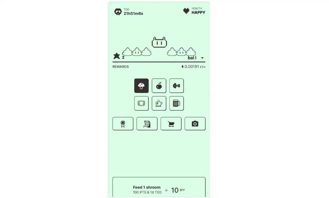 根据游戏设定,每一只宠物都被设定了时长为 5 天的「TOD」,即死亡时间。玩家需要购买道具照顾宠物,每一次与宠物交互都可以重置 TOD,并获得积分。一旦宠物死亡,玩家需要购买道具救活宠物,否则游戏内的积分将被清零。