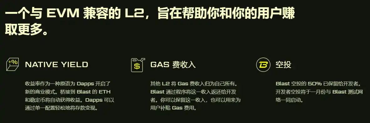Blast 认为,现有 Layer 2 的基准利率为 0%,在默认情况下,用户的资产价值会随着时间的推移而贬值,而在 Blast 上,用户的余额会自动复利,并额外赚取 Blast 奖励。