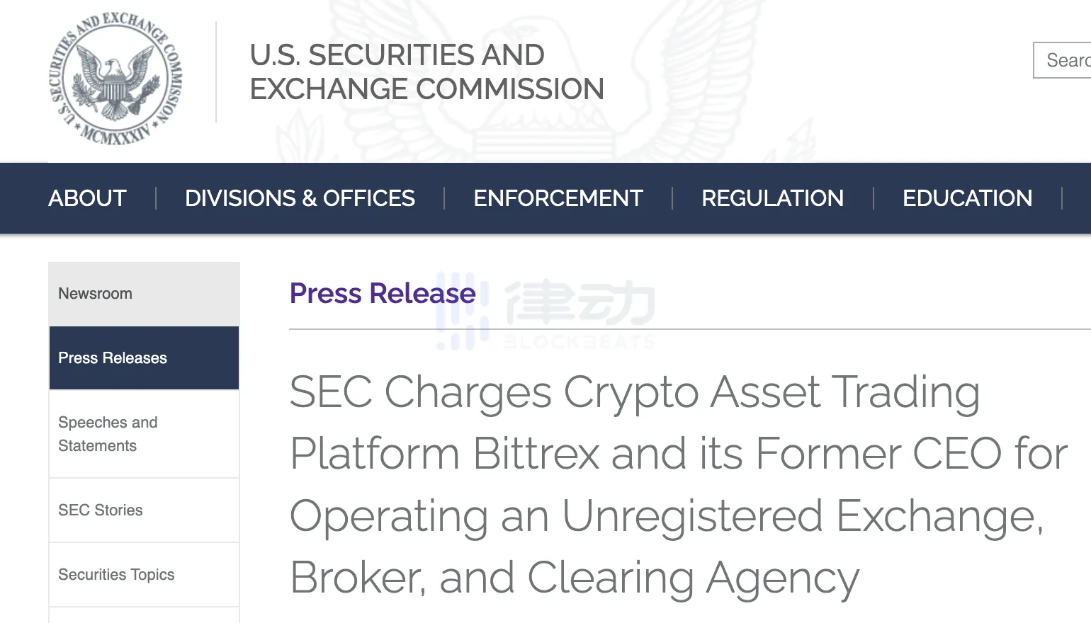 4 月 17 日,在加密行业横行多年的 SEC 终于将矛头对准了 Bittrex,指控 Bittrex 和其前首席执行官未进行交易平台注册便提供证券交易服务。在指控文件中,SEC 将 OMG、DASH、ALGO、TKN、NGC、IHT 等列为在 Bittrex 上交易的证券。