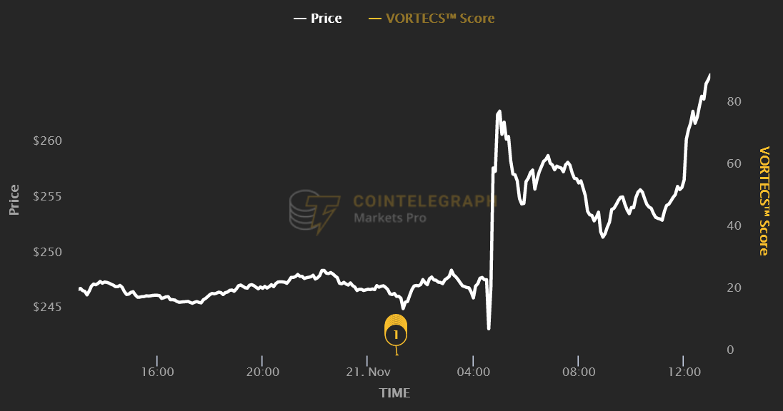 Cointelegraph Markets Pro显示,在彭博社11月20日报道称Binance正在与司法部谈判和解条件,以了解司法部对涉嫌违反制裁、洗钱和欺诈的调查。消息发布后,BNB在30分钟内飙升6%至262美元。