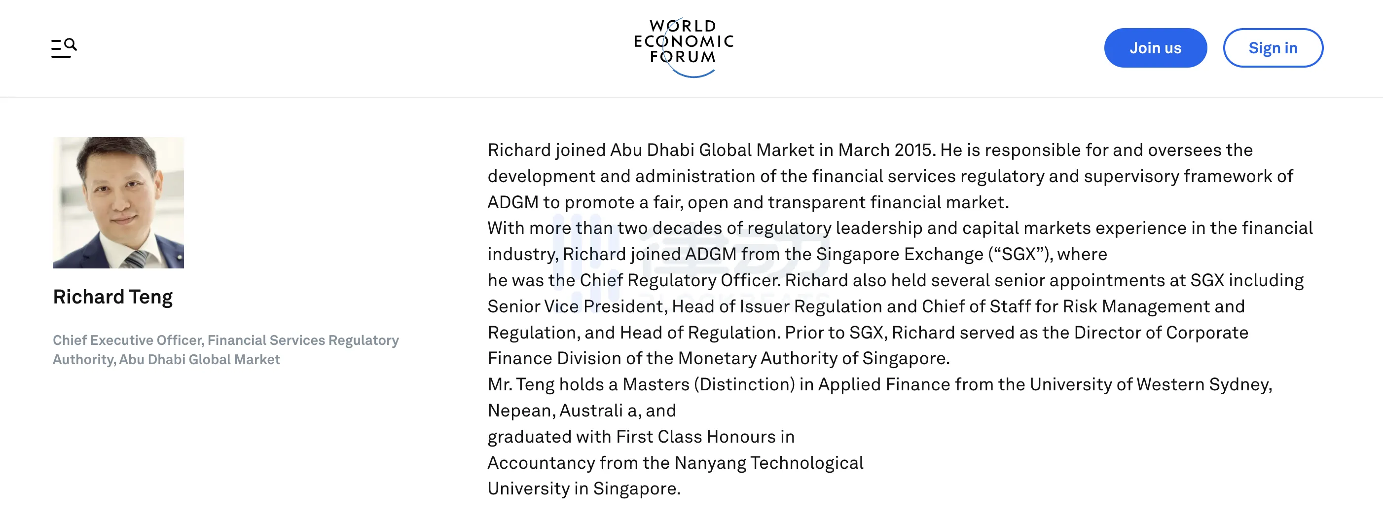 世界经济论坛对 Richard Teng 的官方介绍;图源:WFC 官网
