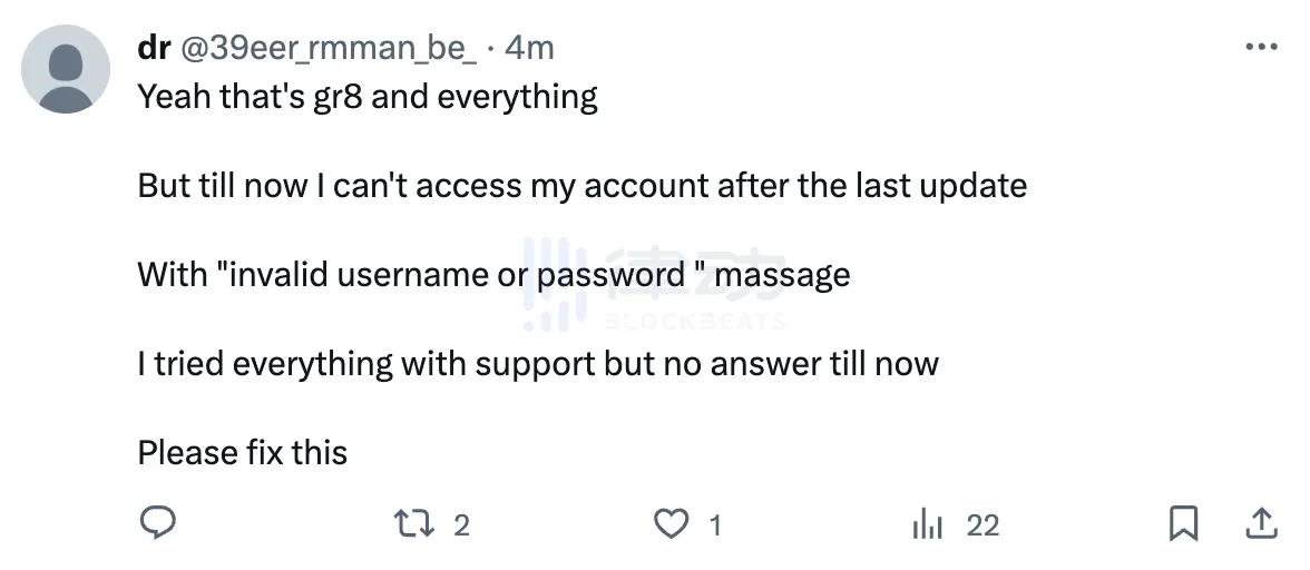 但在公开渠道中,仍能看到多位用户表示「无法访问我的账户」。与此同时也有许多声音表示「$SPACE 提款何时生效?其他币种的存取款为什么还没恢复?」