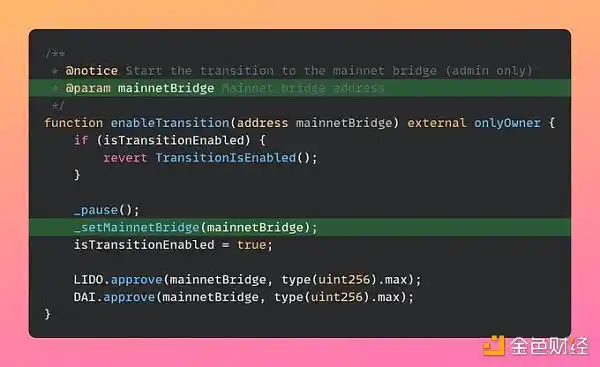 17.函数「enableTransition」要求「mainnetBridge」合约作为参数。