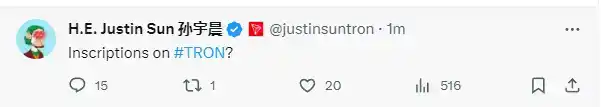 11 月 24 日,Justin Sun 在社交媒体上发文 :「波场网络上的铭文?」,或为试探市场反应。 注:近期,市场在比特币网络铭文的 FOMO 行情推动下,以极快的速度衍生出 Solana、Polygon 以及 Fantom 等链上铭文,Magic Eden 目前已支持 Solana 链上铭文,Polygon 链上铭文市场 POLS Market 已于今日凌晨正式上线,Fantom 网络受铭文铸造影响,昨日晚间 Gas 一度突破 10000Gwei。
