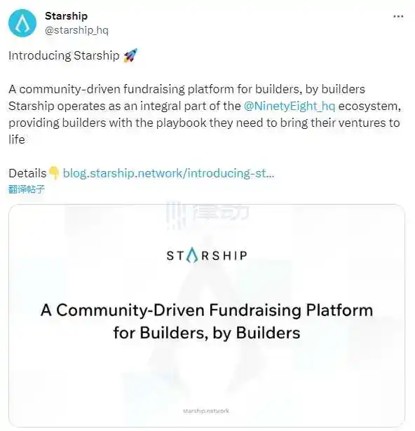 Ninety Eight 推出社区驱动筹款平台 Starship