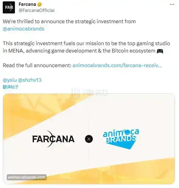 11 月 27 日,据官方消息,总部位于阿联酋的链游工作室 Farcana 宣布获得 Animoca Brands 战略投资。该公司致力于推进游戏和虚拟世界的数字产权,以推动 Farcana 在比特币生态系统内的测试版发布和开发。Farcana 采用虚幻引擎 5 构建,是一款团队竞技场第三人称射击游戏,提供由永久比特币奖池支持的竞争性锦标赛,并将成为首批推出「Free Mint」比特币 Ordinals 的 AAA Web3 游戏之一。该游戏已吸引了超过 40,000 名用户,并正在根据迪拜的初步游戏测试计划举办新的锦标赛。