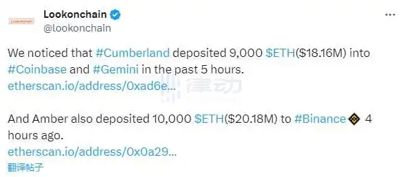 11 月 27 日,据 Lookonchain 监测,Amber 于 4 小时前向 Binance 存入 10,000 枚 ETH,价值约合 2018 万美元。